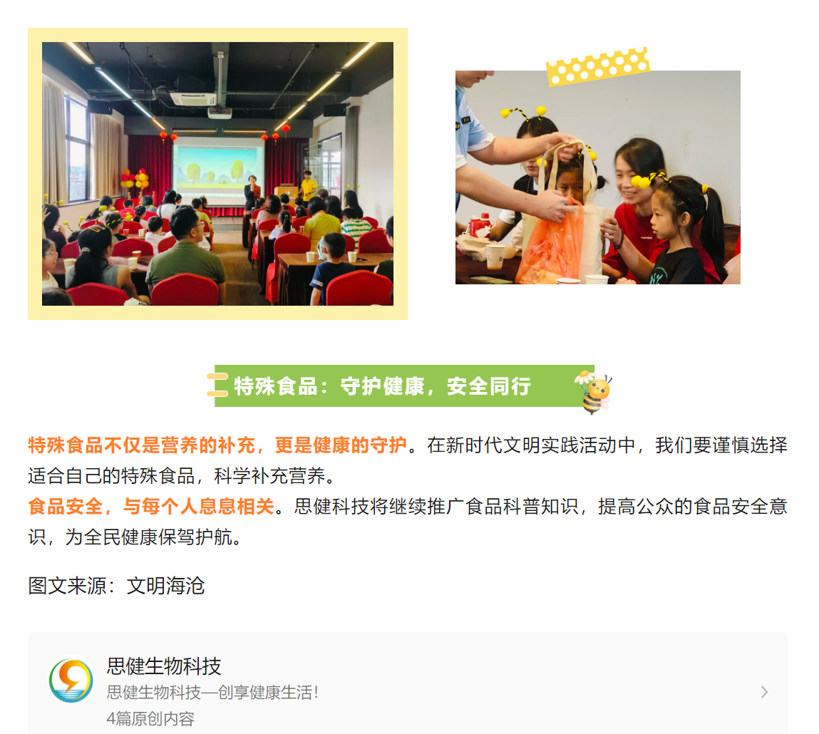 特殊食品知多少?這場(chǎng)活動(dòng)甜蜜又有料….福建特殊食品科普知識(shí)“五進(jìn)”宣傳暨海滄區(qū)新時(shí)代文明實(shí)踐科普活動(dòng)走進(jìn)思健蜂主題科技館